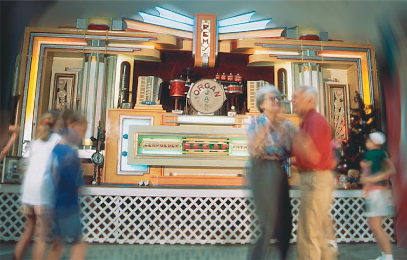 The Decap measures 12 feet tall and 24 feet long. It features 535 pipes, 2 accordions, 2 saxophones, a snare drum, bass drum, woodblock, tempo block, cymbals and a high hat!