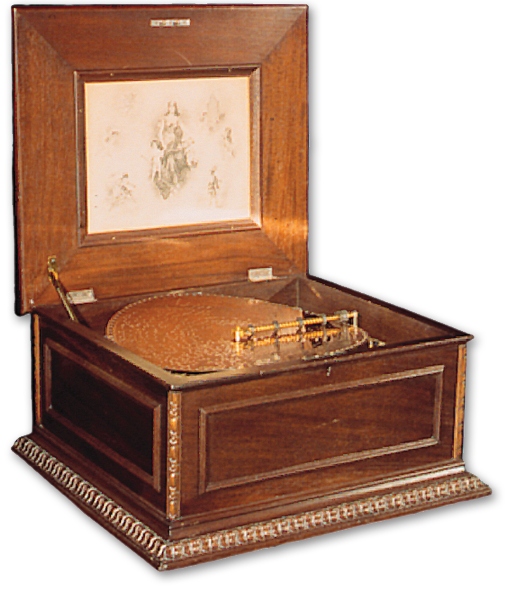 Beginning in the 1880’s, interest in music boxes was developing in America. The Regina Music Box Comapny of Rahway, New Jersey, made many kinds of music boxes but the most popular were the boxes that played interchangeable metal disks. Regina was the largest American manufacturer of music boxes and in time, Wurlitzer became the largest single sales outlet for Regina.